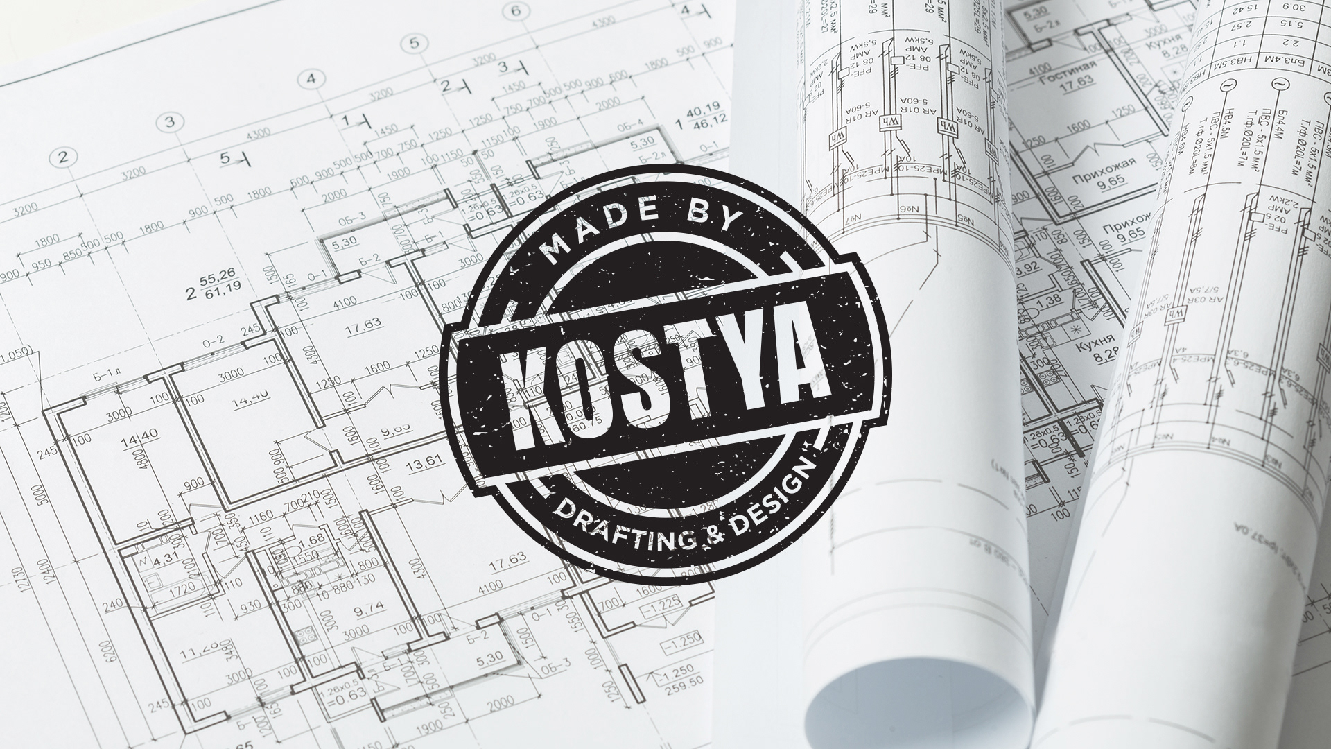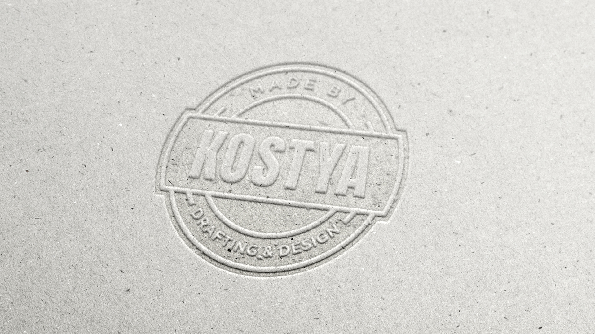 Made by Kostya Drafting & Design needed a stamp to apply to their client work. The logo design maintains a vintage look while communicating a modern aesthetic.